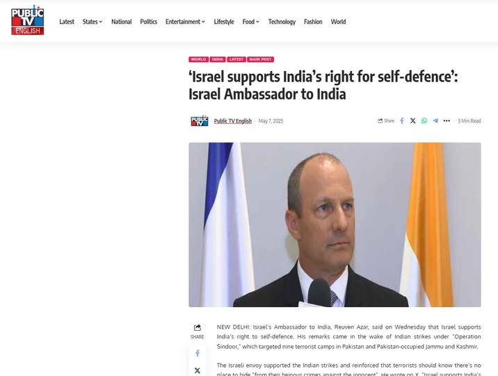 Ба рағми дархостҳои байналмилалӣ барои парҳези Ҳинд ва Покистон аз даргириҳои низомӣ, сафорати Телавив дар Деҳлӣ ҳимояти худро аз ҳамалоти Ҳинд эълом кард.
